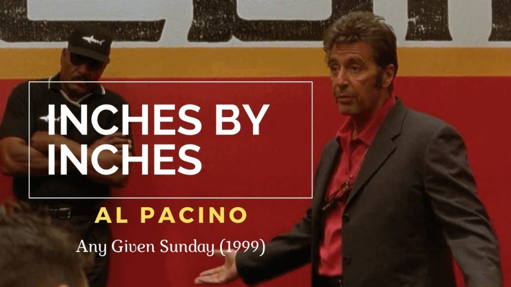 Any Given Sunday, Al Pacino plays coach Tony D’Amato, who delivers a famous pre-game motivational address known as the Inches By Inches speech. The fiery speech rallies his struggling Miami Sharks football team by framing life and football as a game of inches.