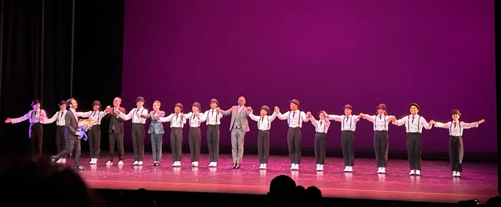 The final pose could have been the culminating imagery of the work, but why not go out with a bang! And the ensemble is recalled in their black and white regalia one more time. Thank you for putting a “button” on the ending. In other words, instead of the music fading out as the lights dim, we got a crescendo then blackout.