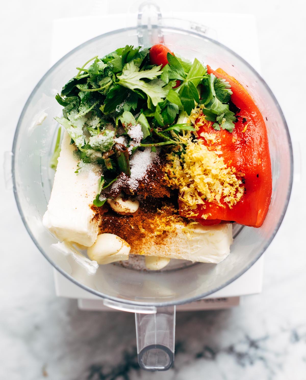Red Pepper Butter: Pulse all the butter ingredients in a food process until mostly smooth. Refrigerate or set aside. (You’ll have A LOT of butter and you’ll only need a few tablespoons for this recipe. Keep the extras in the freezer for more of this, or similar recipes, in the future!)