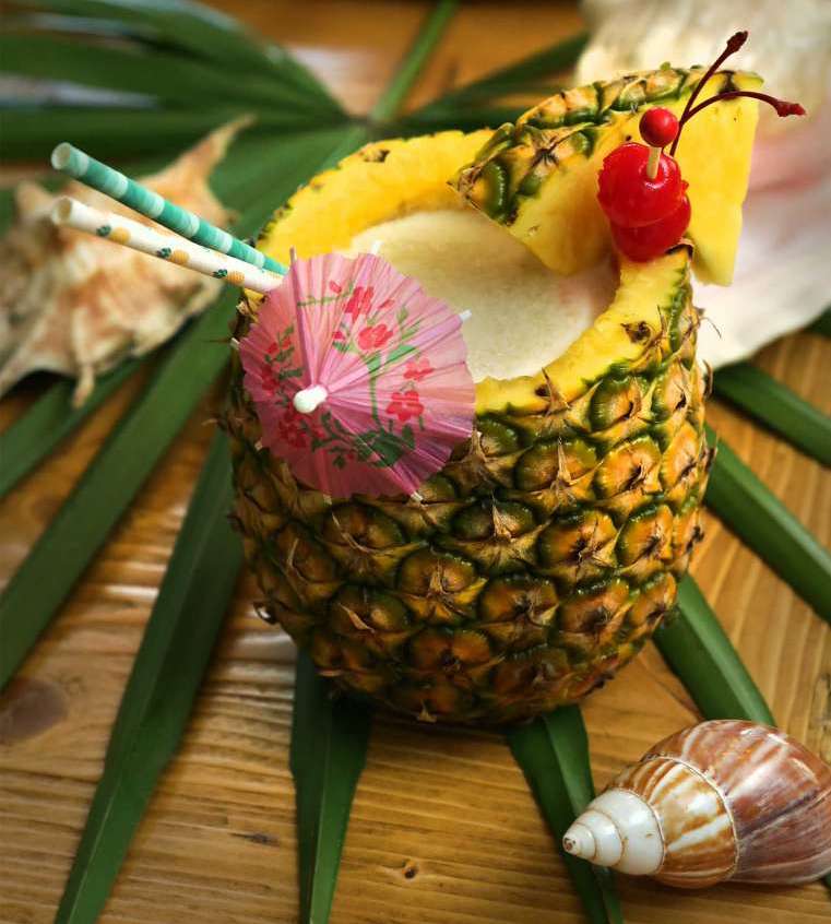 4.In a blender, mix together the alcohol, coconut cream, pineapple chunks, juice, coconut milk and ice. Blend until slushy. Divide drinks between the two pineapple cups cups. Topping with a decorative umbrella is highly encouraged.