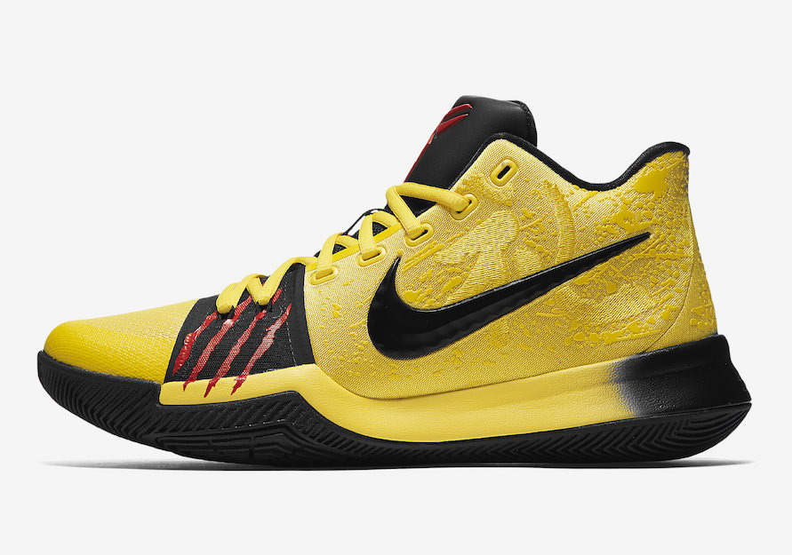 Nike Kyrie 3 model will follow suit with an homage to Kobe Bryant and one of the Black Mamba’s most famous colorways, an homage to martial arts legend Bruce Lee.
