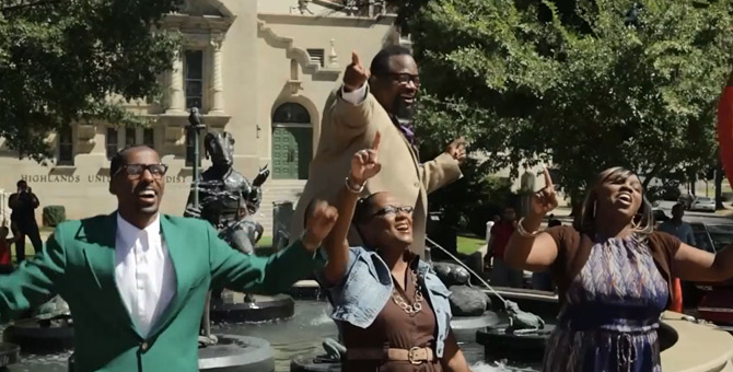 In Every Praise, filmed flash-mob style at Birmingham’s Five Points South fountain, Walker and his friends make a joyful noise in Southside.