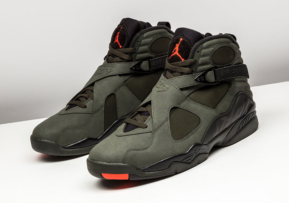 The Air Jordan 8 Take Flight, takes cues from military bomber jackets and fighter planes, and echoed in the colorway. Inspired by the Air Jordan 9 Olive, the sneaker features a Sequoia green upper and for the first time integrates neoprene materials in the upper. A Max Orange stripe has been added to give the shoe a color pop. Look for the Air Jordan 8 Take Flight to release on January 28, 2017 for $190. Continue reading
